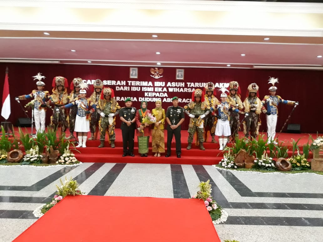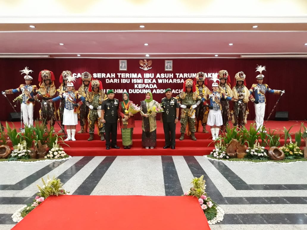 Akademi Militer – Lembah Tidar. Rangkaian kegiatan Serah Terima Jabatan Gubernur Akmil juga diikuti serah terima tugas dan tanggung jawab Ibu Asuh Taruna/Taruni Akmil, dari Ibu Ismi Eka Wiharsa kepada Ibu Rahma Dudung Abdurachman. Tugas dan tanggung jawab sebagai Ibu Asuh, adalah merupakan satu kesatuan utuh dari jabatan dan kehormatan yang telah dipercayakan oleh negara dan bangsa kepada Brigadir Jenderal TNI Dudung Abdurachman, S.E., M.M., selaku Gubernur Akmil. Acara serah terima Ibu Asuh Taruna/Taruni Akmil bertempat di Gedung Lilly Rochli pada hari Sabtu tanggal 13 Oktober 2018 pukul 09.00 WIB sampai dengan selesai, dilanjutkan penanaman pohon di Taman Perpustakaan Akmil. Turut hadir pada acara tersebut, Gubernur Akademi Militer Brigadir Jenderal TNI Dudung Abdurachman, S.E., M.M., Wakil Gubernur Akmil Brigadir Jenderal TNI Wirana Prasetya Budi, S.E., Pejabat Distribusi Akademi Militer, Para Pengurus Persit Kartika Chandra Kirana Cabang BS Akademi Militer dan Pengurus Yayasan Kartika Jaya Cabang BS Akademi Militer serta Taruna/Taruni Akmil. Sabtu (13/10/18).