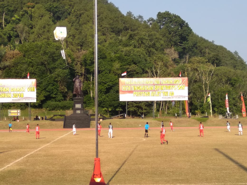 Porad VIII Akmil Magelang (22/7/18), | Magelang – Pertandingan sepak bola Pekan Olahraga Angkatan Darat (Porad) VIII pada hari kedua, Minggu 22 Juli 2018 dilaksanakan di dua tempat, yakni di Stadion Sapta Marga Akmil dan Stadion Moch. Soebroto Kabupaten Magelang. Di Stadion Sapta Marga Akmil jam pertama dipertandingkan antara Tim Sepak Bola Kodam IV/Diponegoro melawan Tim dari Kodam VI/Mulawarman dengan skor 1:2 , pada jam kedua Tim Kodam V/Brawijaya melawan Kodam XIV/Hasanuddin dengan skor 2:1, jam ketiga antara Tim Kodam IX/Udayana melawan Kodam XVIII/Kaswari dengan skor 5:2 dan pada jam terakhir dipertandingakan antara Tim dari Kopassus melawan Tim Kostrad dengan skor sama-sama kuat, satu sama. Diantara suporter yang hadir, dihadiri pula oleh Gubernur Akmil Mayjen TNI Eka Wiharsa, Wakil Gubernur Akmil Brigjen TNI Wirana Prasetya Budi, S.E. yang berada pada tribun kehormatan, dan para pendukung dari tim-tim yang bertanding.