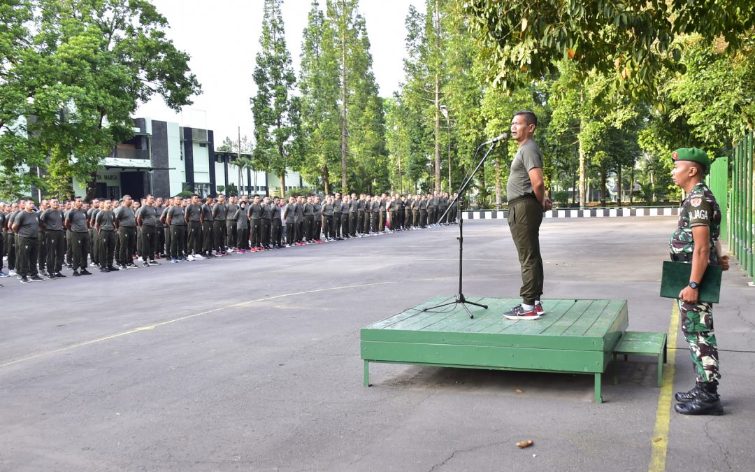 Beliau melanjutkan,” Pelaksanaan apel juga sebagai sarana untuk mengetahui informasi kondisi lingkungan baik perkantoran maupun perumahan personel, sebagai dasar kebijakan pimpinan untuk memerintahkan pembersihan lingkungan perkantoran, fasilitas perkantoran, serta lingkungan perumahan.”