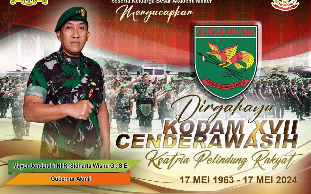 Gubernur Akademi Militer Beserta Persit Kartika Chandra Kirana PCBS Akmil dan Keluarga Besar Akademi Militer Mengucapkan Dirgahayu Kodam XVII Cenderawasih “Ksatria Pelindung Rakyat”. by Penhumas Akmil | May 17, 2024 | Berita