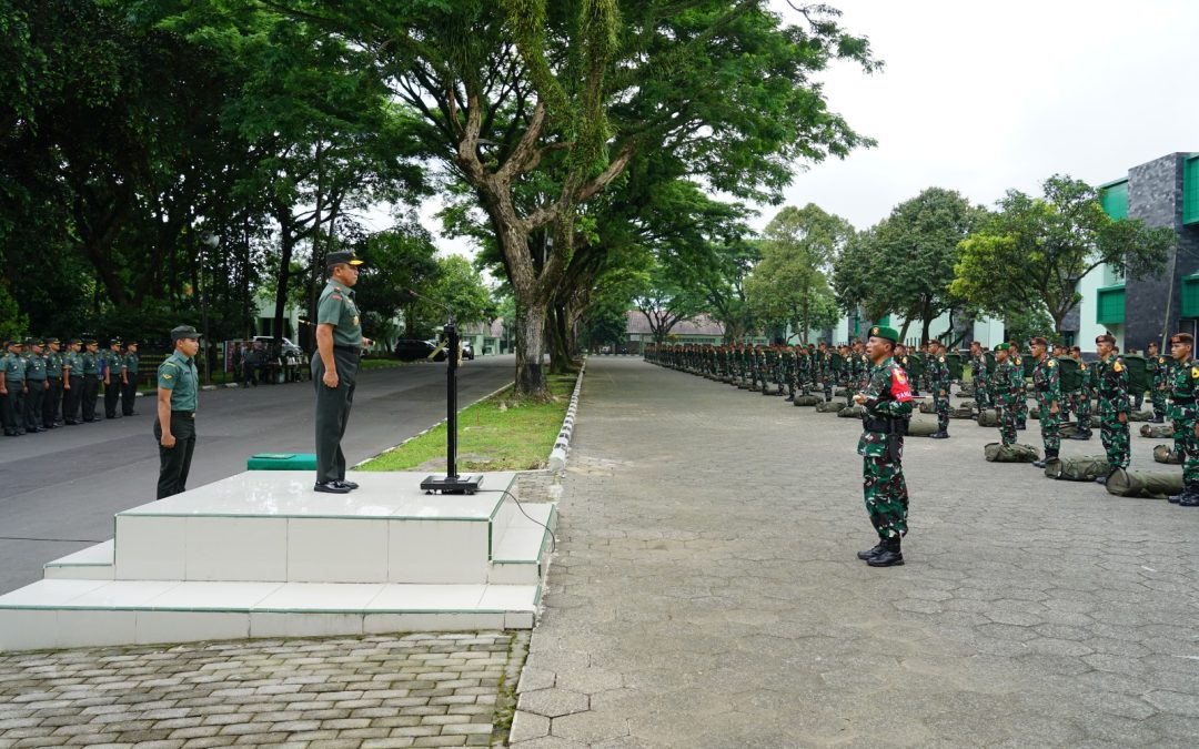 Gubernur Akademi Militer Mayjen TNI Legowo W.R. Jatmiko, S.I.P., M.M. menerima laporan kesiapan latihan Praktik Jabatan/OJT Taruna Akmil tingkat II/Sertar TP 2022/2023 bertempat di Lapangan Mako Mentar Akademi Militer. Kamis (06/04/2023).