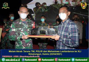 Malam Akrab Taruna TNI, POLRI dan Mahasiswa Latsitardanus ke-XLI Tahun 2021 di Kabupaten Simalungun, acara ini dilaksanakan dengan protokol kesehatan. Bertempat di lapangan Simalungun City Hotel, Kamis,(22/4/2021)