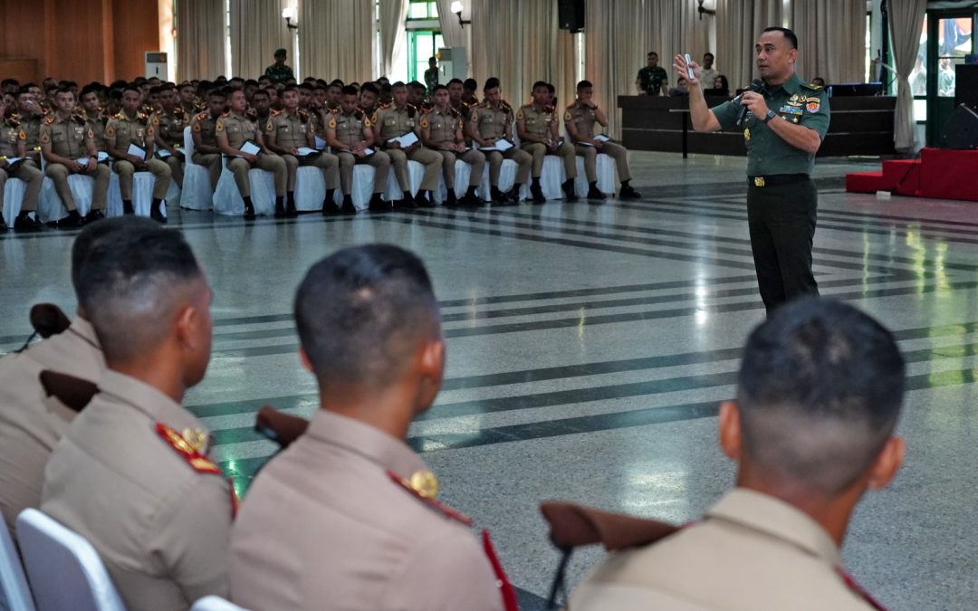 Magelang, 25 Juni 2024 – Direktur Hukum Angkatan Darat (Dirkumad), Brigjen TNI Aloysius Agung Widi Wandono, S.H., M.H. memberikan ceramah pembekalan kepada 417 Taruna Akademi Militer Tingkat IV/Sermatutar Tahun Pelajaran 2023/2024, bertempat di Gedung Moch Lily Rochli, Akademi Militer Magelang.