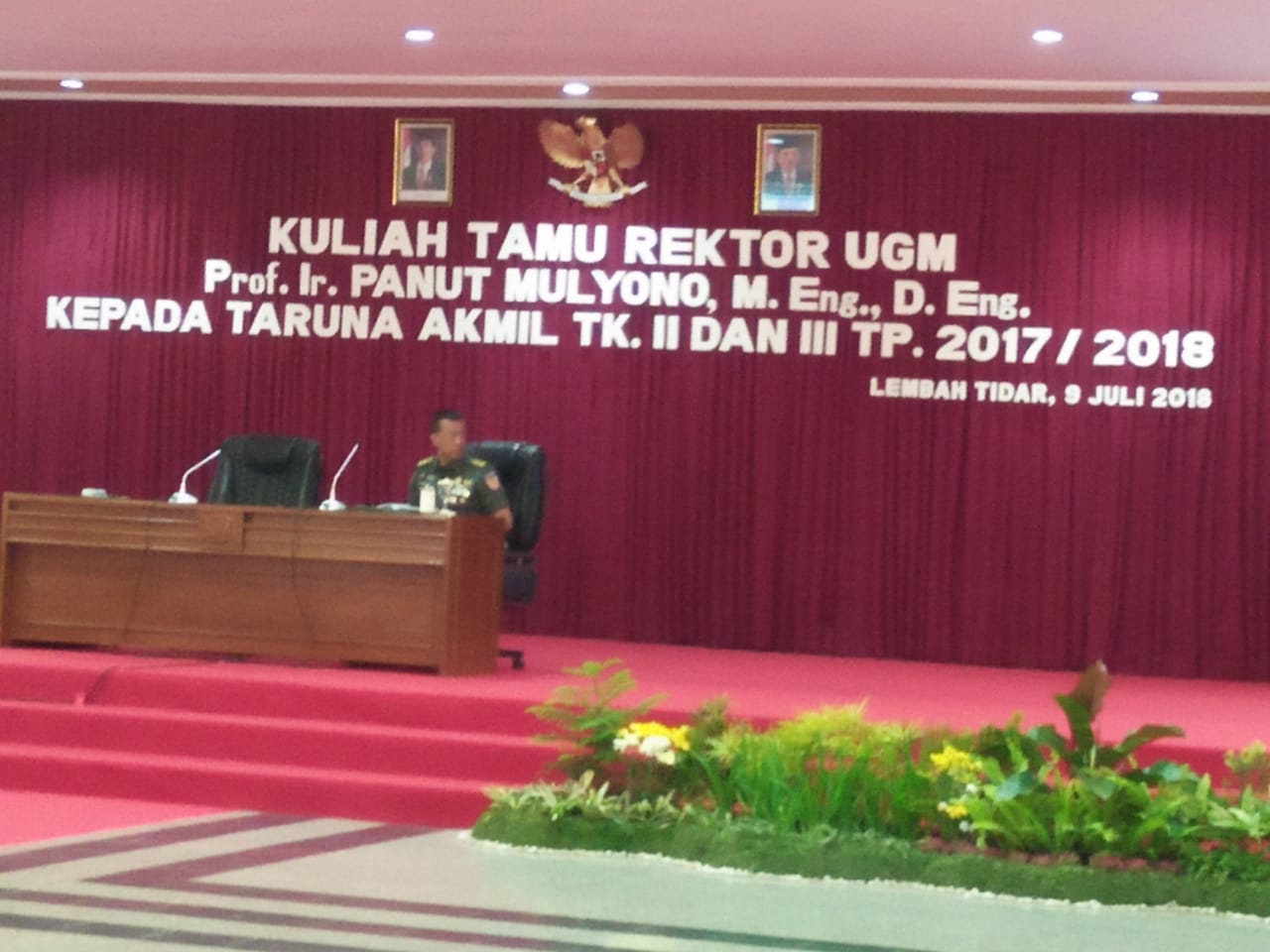 Lembah Tidar (9/7/18) Prof. Ir. PANUT MULYONO, M.Eng., D.Eng selaku Rektor UGM Jogjakarta memberikan Pembekalan kepada Taruna Akmil Tingkat II, III juli 2018, bertempat di Gedung Lily Rocly Akmil Magelang, Kamis 08.30-11.30 (09/07/2018). Acara tersebut di hadiri oleh para pejabat Distrbusi A dan B, Perwakilan Tenaga pendidik, Dosen,Pengasuh Taruna Akmil tingkat II dan III ,terdiri dari 251 taruna tingkat II/ sertar dan 269 Taruna tingkat III / Sermadatar.