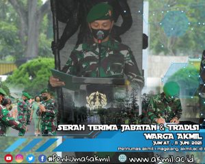 Akademi Militer menggelar acara Serah Terima Jabatan dan Tradisi Warga Akademi Militer serta serah terima tugas dan tanggung jawab jabatan Kadepjas (Kepala Departemen Jasmani) dan lain lain di lingkungan Akademi Militer, bertempat di Selasar Main Hall Akademi Militer. Jum’at (11/06/2021).