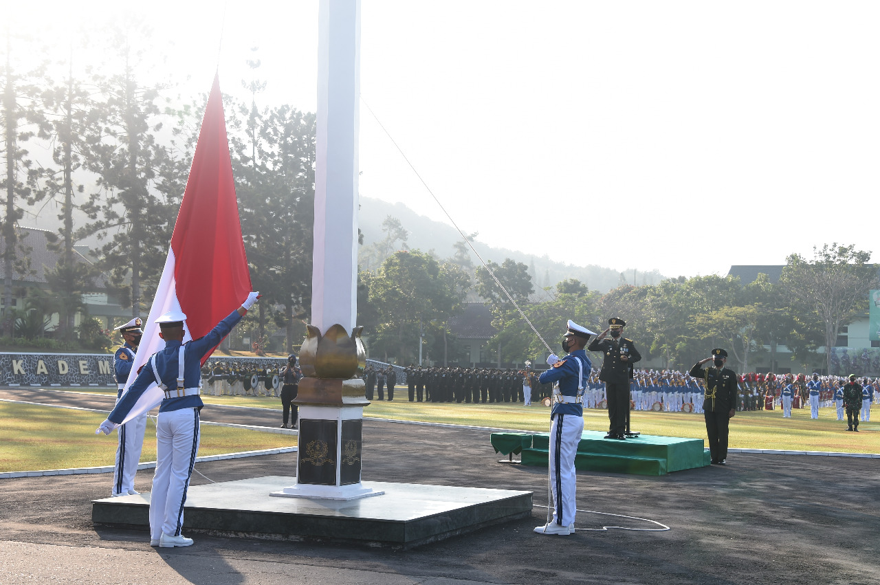 Taruna Akademi Militer Tingkat II (424 Taruna) dan III (365 Taruna) melaksanakan Upacara Peringatan Hari Proklamasi Kemerdekaan RI ke-76 dengan tema “Indonesia Tangguh Indonesia Tumbuh”, yang bertempat di Lap. Pancasila Akmil Magelang. Selasa (17/08/2021).