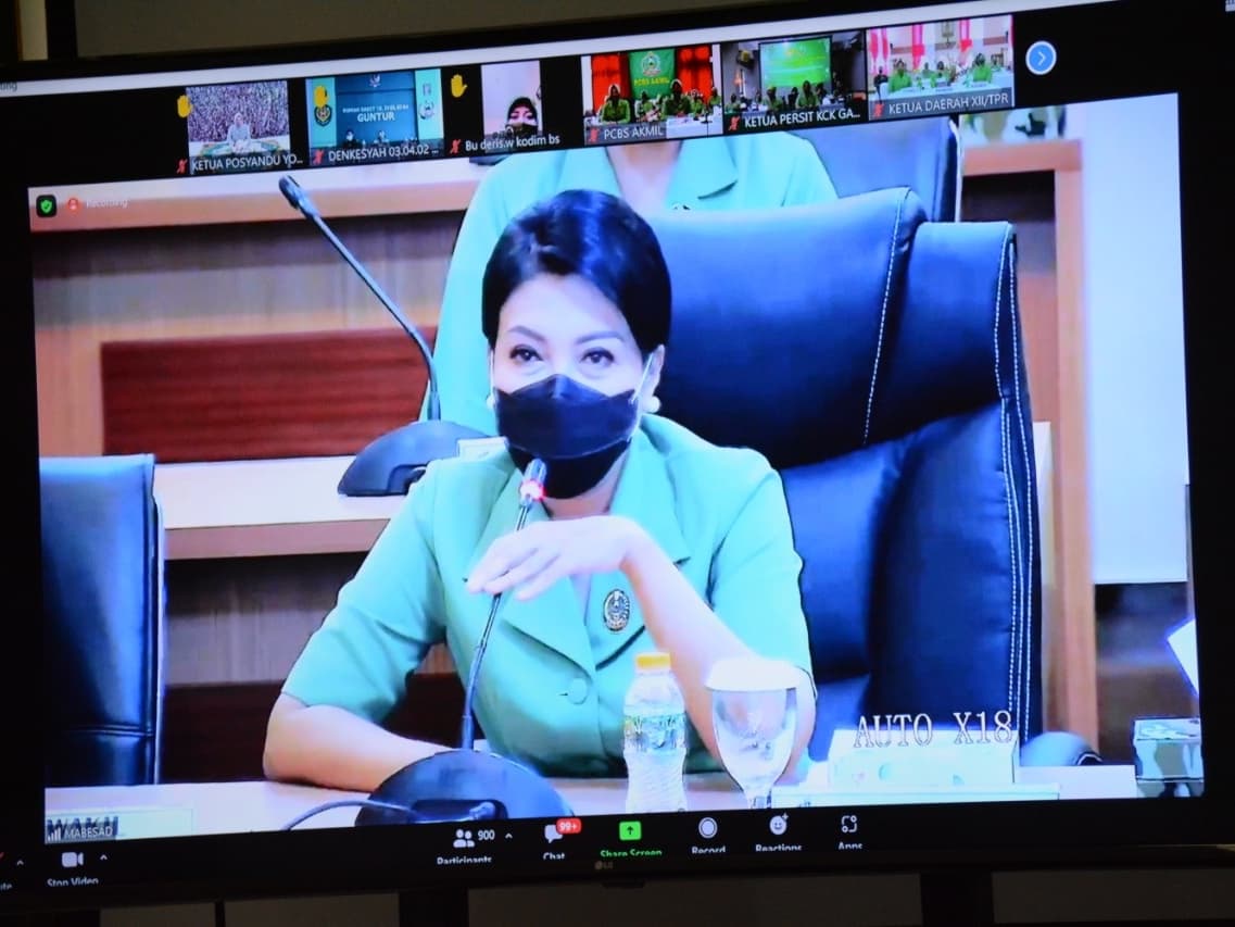 Ibu Ketua Persit Kartika Chandra Kirana PCBS Akmil Ny. Fenty Candra Wijaya dan ibu Wakil Ketua Ny. Rini Agit Thomas serta para pejabat Persit Kartika Chandra Kirana PCBS Akmil mengikuti Video Conference Sosialisasi Revitalisasi  Posyandu  di Lingkungan  Pesit  Kartika Chandra Kirana oleh Ketua Umum (Ketum) Persit Kartika Chandra Kirana Pusat Ibu Hetty Andika Perkasa dan Kapuskesad (Kepala Pusat Kesehatan Angkatan Darat) Mayjen TNI dr. Budiman, Sp.BP.RE (K)., M.A.R.S., M.H